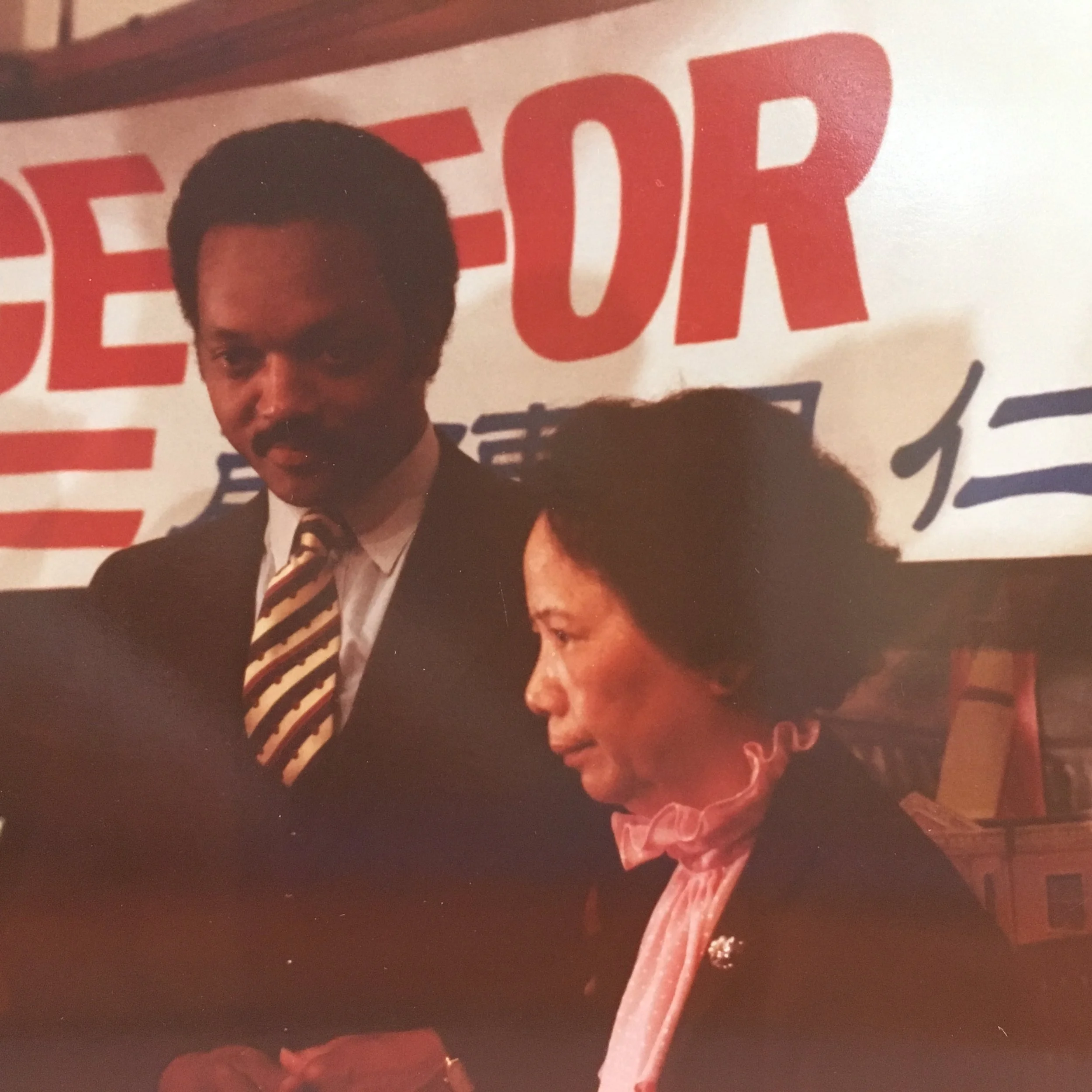 Rev. Jackson named the beloved Rainbow, welcoming all into his coalition of the dispossessed, always advancing solidarity. He embraced the Asian American community and was the first national civil rights leader to support the Vincent Chin movement for justice. He came to SF Chinatown to stand with Lily Chin and AAPIs. He empowered the invisibilized to raise our voices and shout “I am somebody!” Rev. Jackson graced us with his far-reaching vision, bold spirit, indomitable dedication in the fight for all in the Rainbow.